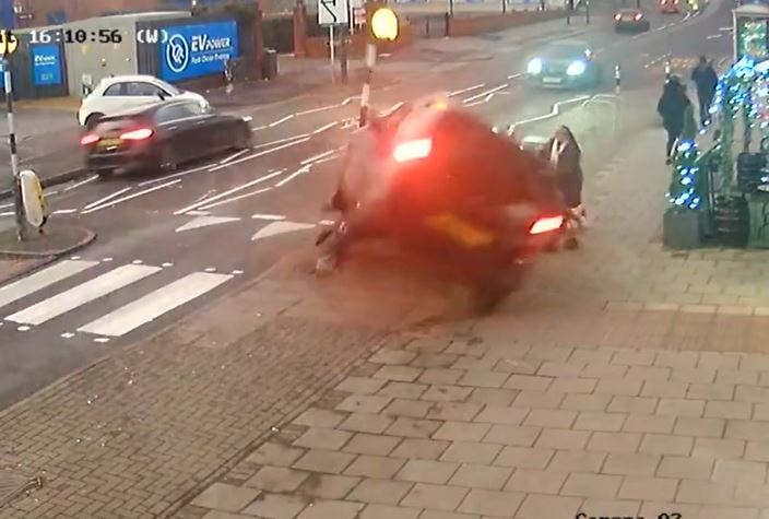 DNVN - Một vụ tai nạn thót tim xảy ra tại Olton, Solihull, West Mids, Anh khi chiếc ô tô bất ngờ lao lên vỉa hè, lật nghiêng và suýt đè trúng hai mẹ con đang đi bộ. Phản xạ nhanh của người mẹ đã giúp con gái 2 tuổi thoát chết trong gang tấc.