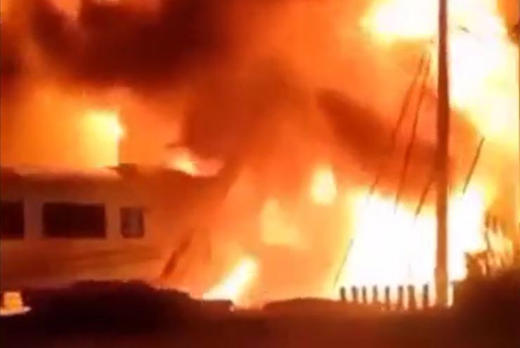 Xe đầu kéo mắc kẹt trên đường ray bị tàu hỏa tông nổ tung