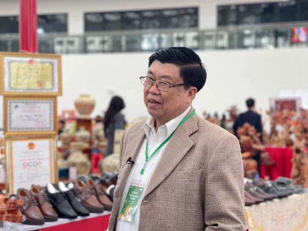 Ở lĩnh vực thủ công mỹ nghệ, Nghệ nhân Nguyễn Viết Võ – Phó Chủ tịch Hiệp hội da giày Hải Phòng, mang đến hội chợ những đôi giày da OCOP nam duy nhất của khu vực, được làm nên từ bàn tay khéo léo của thợ giỏi làng nghề 500 năm tuổi. Với ông, mỗi đôi giày là sự pha trộn giữa truyền thống và công nghiệp, tạo việc làm cho hàng ngàn lao động nông nhàn với thu nhập ổn định 20 triệu đồng/tháng vào dịp cao điểm.