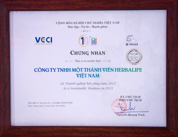 Herbalife Việt Nam được vinh danh tại Top 100 Doanh Nghiệp Bền Vững Việt Nam 2025.