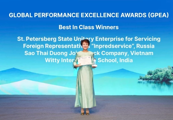 Bà Nguyễn Thị Hương Liên - CEO Sao Thái Dương nhận giải thưởng Chất lượng Xuất sắc châu Á - Thái Bình Dương 2025 tại Bắc Kinh, Trung Quốc ngày 16/10/2025.