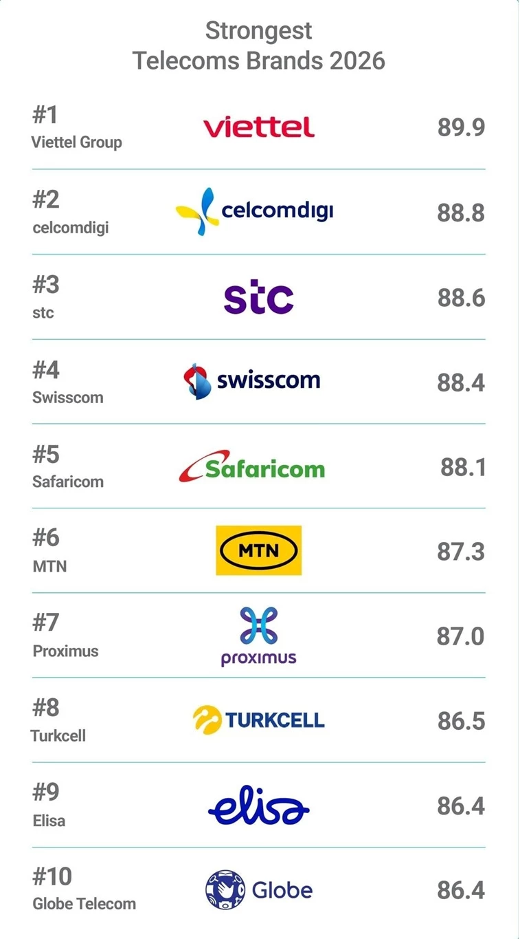Kết quả này đánh dấu bước bứt phá của Tập đoàn Công nghiệp – Viễn thông Quân đội Việt Nam sau hai năm liên tiếp đứng thứ hai, chính thức vươn lên vị trí dẫn đầu toàn cầu về sức mạnh thương hiệu trong lĩnh vực viễn thông.