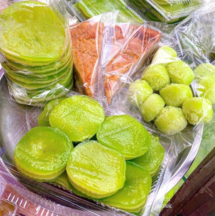 Bánh da lợn với nhân đậu xanh ngọt bùi, lá dứa thơm lừng từ lâu đã là đặc sản quen thuộc của người dân Nam Bộ. Hàng bánh ở Thành Thái (quận 10) là điểm hẹn phù hợp để thực khách đặt mua món ăn này, mức giá 30.000 đồng/hộp. Ảnh: Hukha.foodaholic.