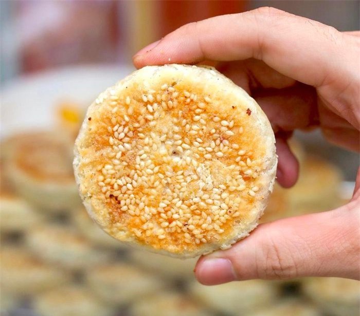 Bánh hạt dẻ có vỏ giống bánh pía nhưng khô hơn, điểm nhấn là phần mè rang được phủ trên bề mặt và nhân hạt dẻ nghiền nhuyễn. Trên trang cá nhân, tài khoản Kaiwaii.food chia sẻ: "Phần nhân khá khô tuy nhiên vẫn có độ béo bùi và hương thơm đặc trưng từ hạt dẻ". Bánh không chỉ phù hợp với trẻ nhỏ mà người lớn cũng ưa chuộng khi nhâm nhi cùng trà. Khách có thể ghé tiệm bánh hạt dẻ đường Nguyễn Trãi (quận 5) hoặc đặt qua ứng dụng để được giao tận nơi. Ảnh: Kaiwaii.food.