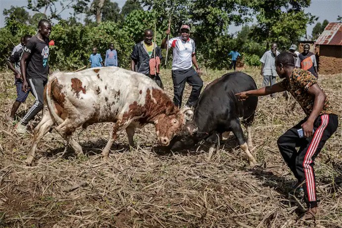 Những ngày này ở Kenya, các quy định chống dịch yêu cầu tang lễ không được có quá 50 người tham dự, nhưng đám tang của Edward Lilumbi Litali trong tháng này đã thu hút hàng nghìn người. Litalu được chôn cất trong một cánh đồng thuộc khuôn viên gia đình, nơi ông đã có một sự nghiệp đấu bò lẫy lừng. Sự thành công đã mang lại cho ông những thứ xa xỉ như điện, truyền hình vệ tinh và “sự tân tiến”, theo lời Munanga.