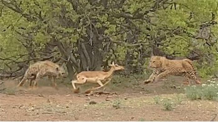 Linh dương mang thai bị báo và linh cẩu chặn: Ai thắng?