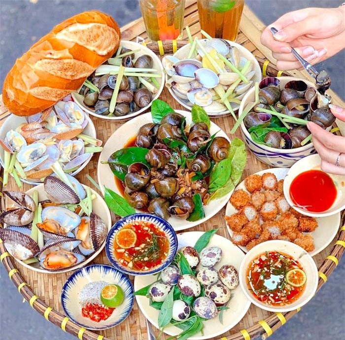 Ốc luộc mang phong vị của ẩm thực Bắc ở quán ăn trên đường Nguyễn Sơn Hà (quận 3) cũng là gợi ý hấp dẫn để bạn đổi vị. Thực đơn của quán gồm nghêu, sò lông, sò lụa hấp sả. Ốc đắng, ốc bươu luộc, nem chua rán hay trứng cút lộn cũng là các hương vị hấp dẫn mà bạn không thể bỏ qua. Giá cả tại đây dao động từ 20.000 đến 65.000 đồng. Các món được bày trên mẹt tre càng làm thực khách hứng thú. Ảnh: Biteallfood.
