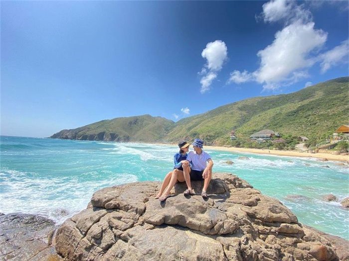 - Bãi biển dài khoảng 1 km, không dốc như một số địa điểm ở Nha Trang