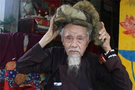 Cụ ông Nguyễn Văn Chiến, 87 tuổi (ngụ ấp Dầu, Đông Hòa, Châu Thành, Tiền Giang) có mái tóc dài hơn 3m, kết lại như hình con rồng. Điều đặc biệt là cụ Chiến đã giữ mái tóc này mấy chục năm cuộn tròn trên đầu và không bao giờ gội.