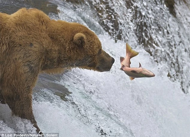 Nhiếp ảnh gia Loic Poidevin phục kích nhiều ngày ở thác Brooks, Alaska để ghi lại cảnh tượng ngoạn mục khi gấu nâu săn cá hồi và những hình ảnh do anh ghi lại được không khiến người xem thất vọng. (Nguồn Dailymail)