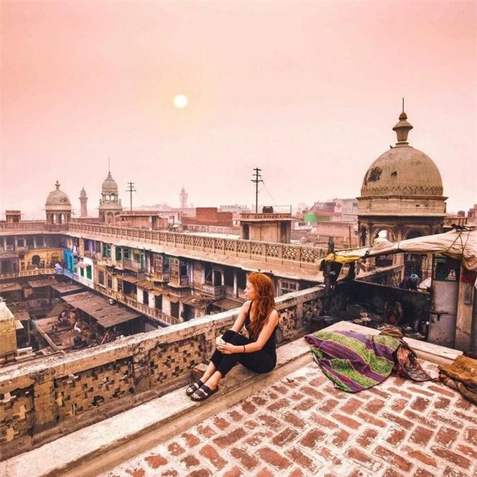 | Sau khi len lỏi khắp các gian hàng và đắm mình trong không khí náo nhiệt của khu chợ, bạn nên tìm đường lên tầng thượng. Ở đây có thể quan sát pháo đài Đỏ, nhà thờ Hồi giáo Fatehpuri và các địa danh nổi tiếng trong khu vực. Nơi này được ví von là ốc đảo tĩnh lặng, mang đến cho du khách background chụp ảnh ấn tượng nhất. Ảnh:Pinterest. |