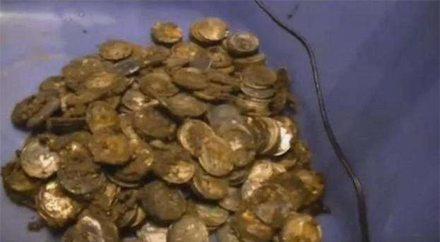 Ngay khi vừa được mở ra, rất nhiều tiền xu bên trong bức tượng đã rơi đồng loạt xuống mặt đất. Mặc dù bị phủ đầy bụi bặm, thế nhưng vẫn không khó để nhìn ra tất cả chúng đều được làm từ chất liệu vàng.