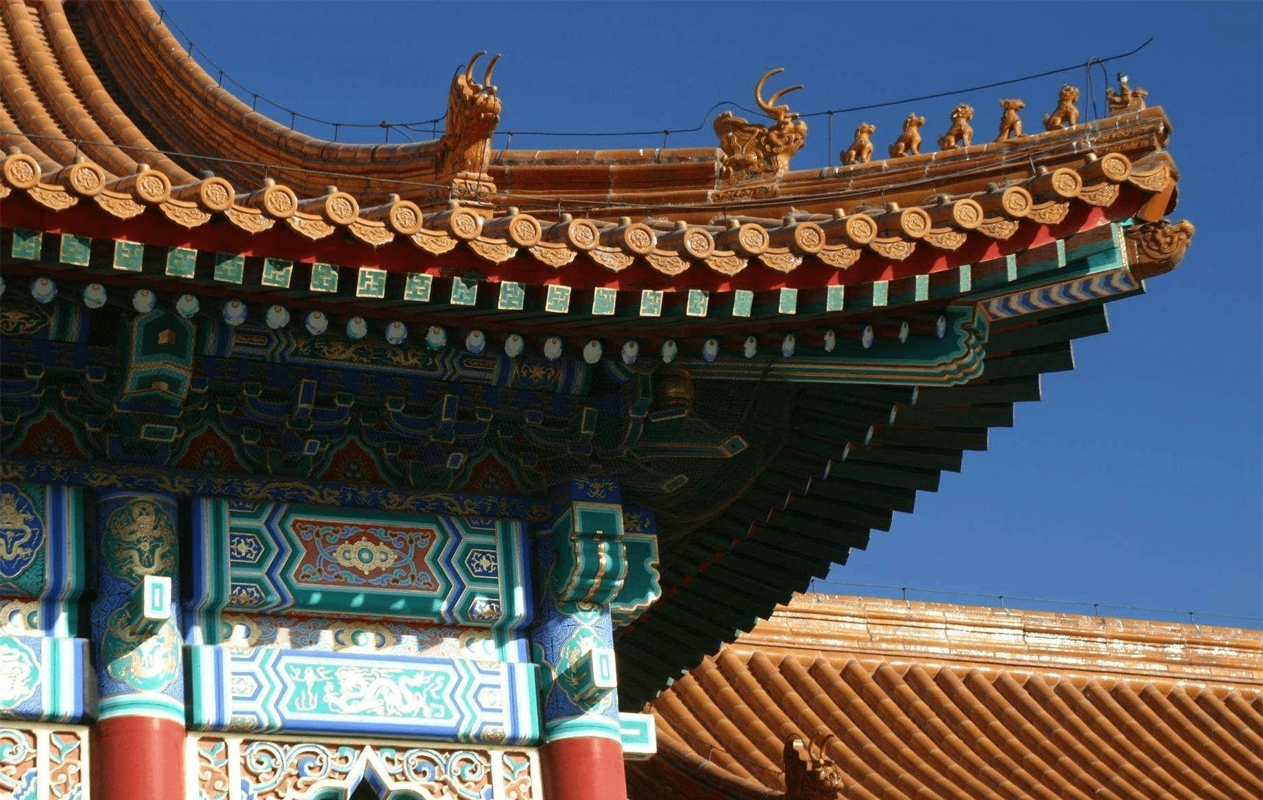 Đầu tiên, nóc cung điện trong Cố cung được lợp bằng ngói lưu ly liền mạch không kẽ hở.