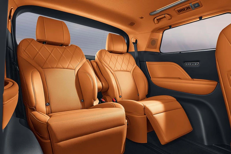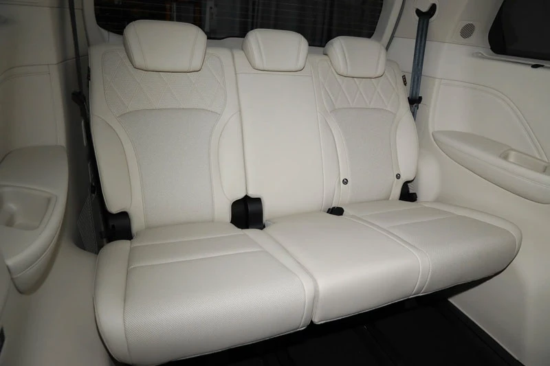 Hàng ghế thứ ba có thể gập linh hoạt, với tựa lưng chỉnh điện, cùng rèm che nắng riêng cho từng hàng ghế. Thiết kế nội thất thân thiện với gia đình còn thể hiện qua bậc lên xuống hai tầng và tay vịn dài hai tầng ở cửa sau, giúp người già và trẻ nhỏ lên xuống dễ dàng hơn. Khu vực cốp xe có nguồn điện 220V tích hợp, trang bị màn hình giải trí 17,3 inch và tủ lạnh mini phía sau.
