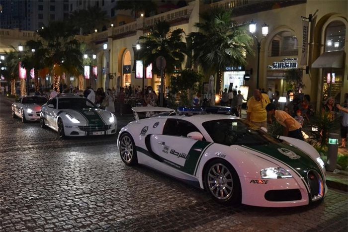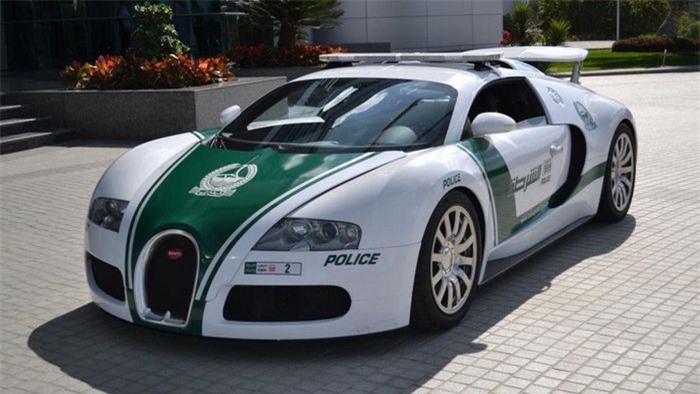 Bugatti Veyron là siêu xe làm nên tên tuổi của cảnh sát Dubai khi xuất hiện vào năm 2014. Với tốc độ tối đa 407 km/h, Veyron trở thành mẫu xe cảnh sát nhanh nhất thế giới khi đó. Sức mạnh của xe đến từ động cơ W16 8.0L, mạnh 1.000 mã lực. Ảnh: yordi-02.