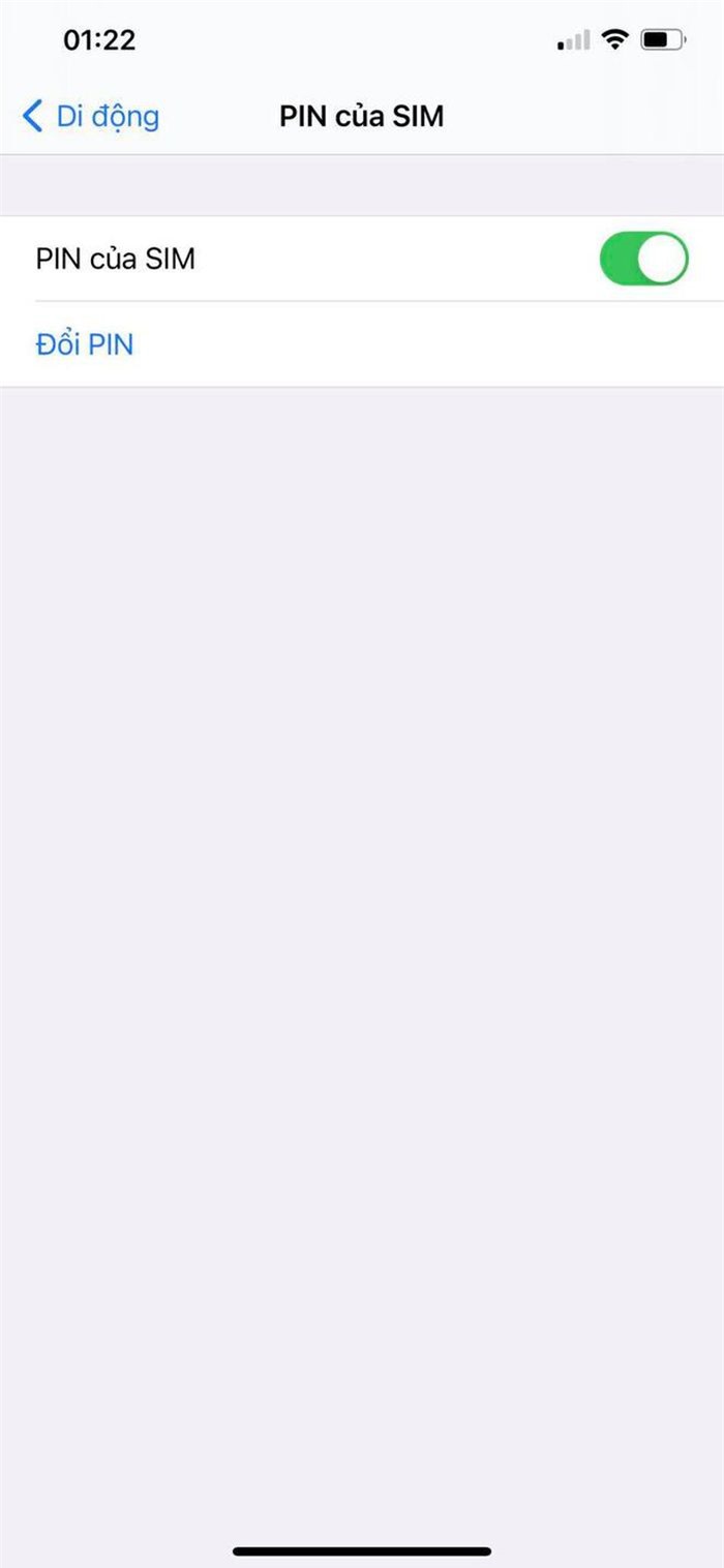 Vào Cài đặt => Di động => PIN của SIM => bật PIN của SIM