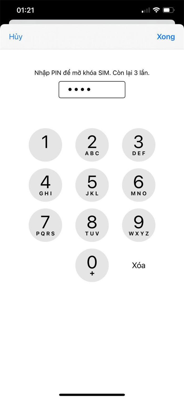 Lúc này bạn sẽ được yêu cầu nhập PIN để mở khóa SIM (mã PIN mặc định) => đổi lại mã PIN mới