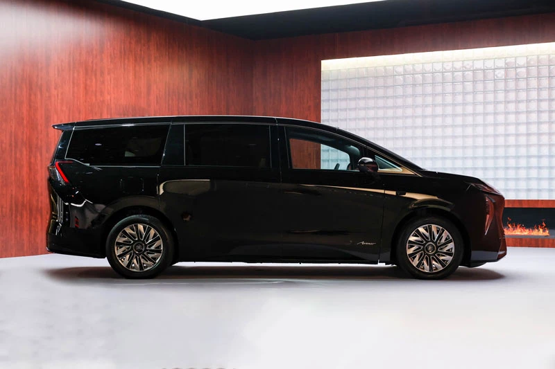 Thân xe trơn phẳng, tay nắm cửa ẩn, cửa trượt điện có tính năng Gesture Control, diện mạo hai tông màu sang trọng và bộ mâm 18-19 inch tùy phiên bản. Đuôi xe sử dụng dải đèn hậu LED “Flower Flowing Flame” gồm 257 bóng LED trải dài, logo Buick đặt giữa và cửa hậu chỉnh điện tích hợp cảm biến đá chân.