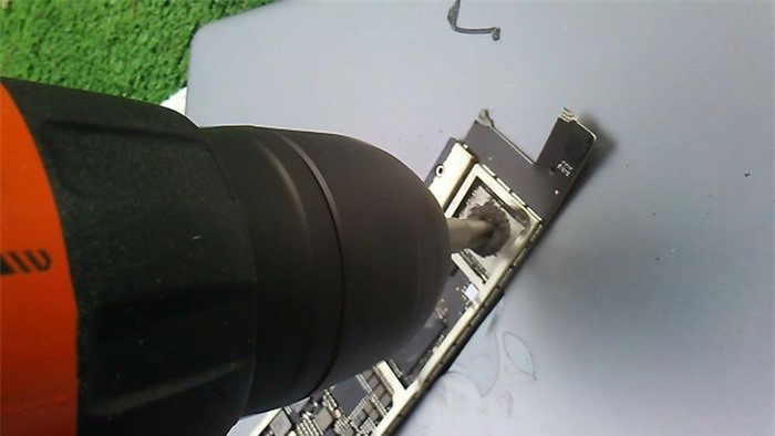 Gợi ý từ bài viết là dùng một máy khoan và khoan xuyên qua chip bộ nhớ cho đến khi phần thiết bị này vỡ ra. Tác giả bài viết lưu ý bạn hãy đảm bảo các vấn đề an toàn trước khi bắt đầu việc phá hủy chip nói trên.