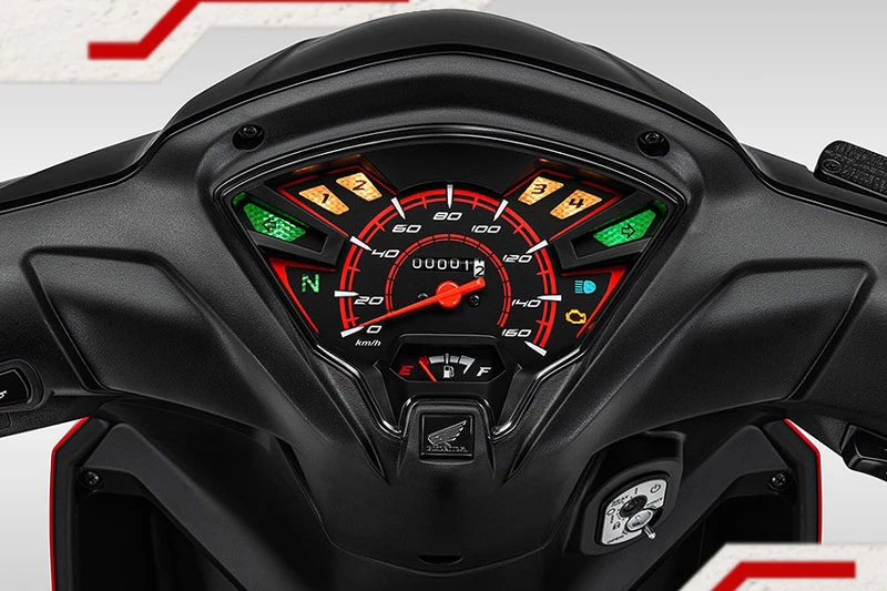 Đặc biệt, ở bản màu đỏ đen, tem xe lấy cảm hứng từ các mẫu xe đua chuyên nghiệp với sự phối màu hài hòa giữa màu đỏ, xanh và trắng tạo nên diện mạo mạnh mẽ, đậm chất tốc độ. Ngoài ra, Honda Wave RSX FI 2026 vẫn duy trì các chi tiết đặc trưng như mặt đồng hồ thể thao hiện đại, cụm đèn hậu vuốt cao đầy khí chất, cùng ốp ống xả đen bằng nhựa cao cấp tăng thêm vẻ mạnh mẽ.