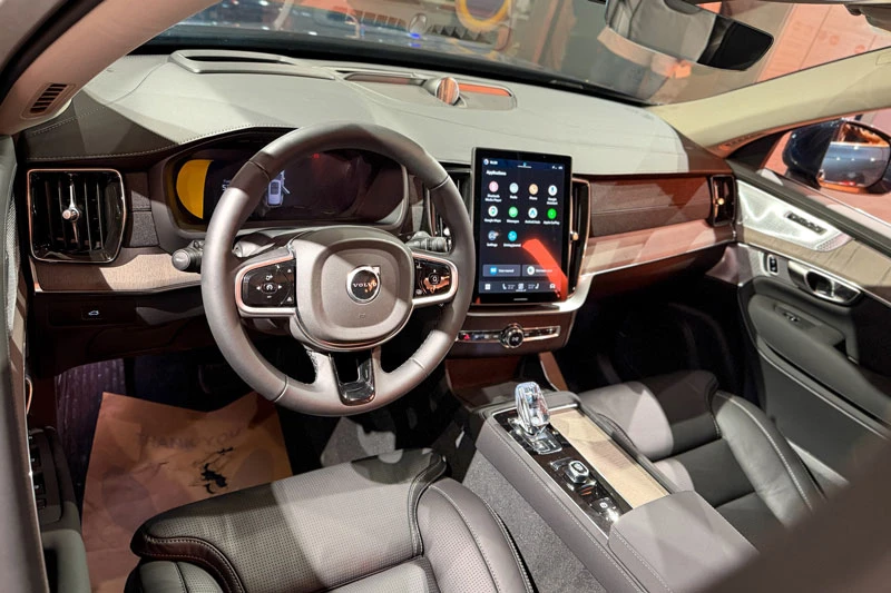 Bên trong khoang cabin, XC90 2026 tiếp tục duy trì phong cách tối giản đặc trưng của Volvo nhưng được nâng cấp mạnh về công nghệ. Trung tâm bảng điều khiển là màn hình giải trí đặt dọc kích thước 11,2 inch với độ phân giải cao hơn, mang lại trải nghiệm hiển thị sắc nét và trực quan hơn trong quá trình sử dụng. Đáng chú ý, xe được trang bị nền tảng xử lý mới với chip Snapdragon Cockpit do Qualcomm phát triển, giúp tăng gấp đôi hiệu năng xử lý và cải thiện đáng kể độ mượt của giao diện đồ họa.