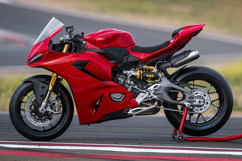 Phiên bản S được trang bị hệ thống treo trước và sau Ohlins cao cấp, giúp tối ưu độ ổn định khi vào cua và tăng độ chính xác khi vận hành ở tốc độ cao. Hệ thống phanh sử dụng đĩa đôi cho bánh trước và đĩa đơn cho bánh sau, đi kèm bộ mâm 17 inch cho cả hai bánh, đảm bảo khả năng kiểm soát lực phanh và độ bám đường. Những trang bị này giúp Ducati Panigale V2 S 2026 duy trì vị thế cạnh tranh trong phân khúc sportbike trên 700 triệu đồng tại Việt Nam.