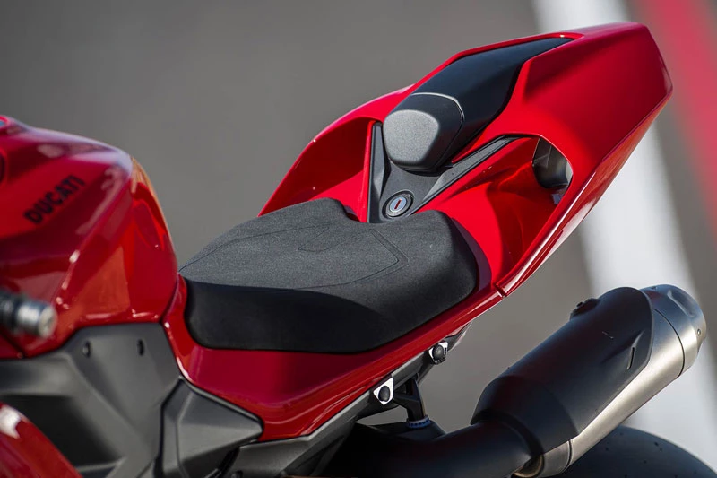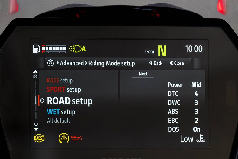 Khoang lái của Panigale V2 S 2026 được nâng cấp với màn hình TFT 5 inch giao diện mới, tối ưu khả năng hiển thị thông số vận hành. Người lái có thể lựa chọn ba chế độ hiển thị tương ứng với các chế độ lái Road, Road Pro và Track, đồng thời màn hình có khả năng tự điều chỉnh độ sáng theo điều kiện môi trường, tăng tính tiện dụng khi di chuyển cả ban ngày lẫn ban đêm. Xe cũng được trang bị đầy đủ các công nghệ hỗ trợ người lái hiện đại như hệ thống đo quán tính 6 trục, kiểm soát lực kéo, kiểm soát bốc đầu, ABS khi vào cua và sang số nhanh Quick Shift thế hệ 2.0, giúp nâng cao độ an toàn và hiệu suất vận hành.