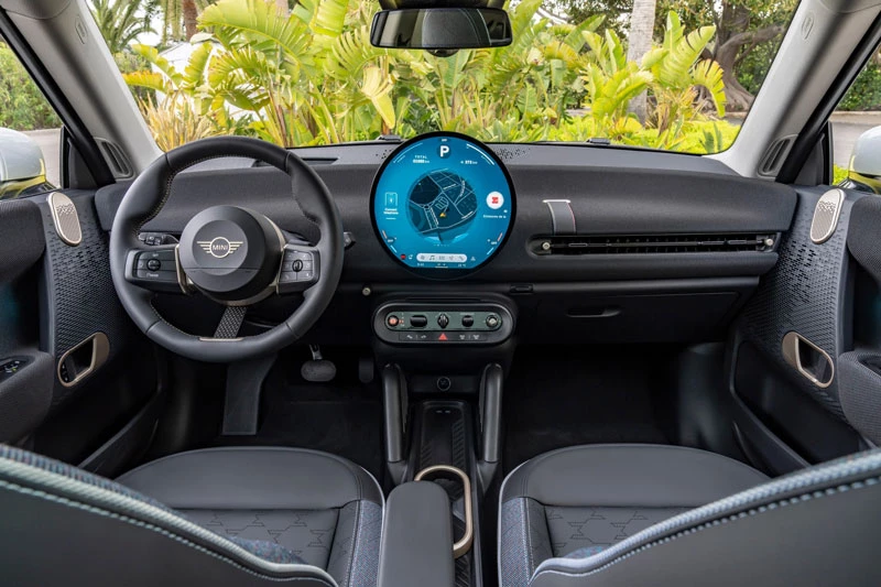 Hệ thống thông tin giải trí MINI Interaction Unit với màn hình OLED 9,5 inch tràn viền là điểm nhấn công nghệ trên MINI Countryman thuần điện. Màn hình hiển thị trực quan các thông tin như tốc độ, mức tiêu thụ năng lượng, bản đồ, thông báo và điều khiển âm thanh. HUD phía trước giúp người lái quan sát thông số di chuyển mà không rời mắt khỏi đường. Xe trang bị vô-lăng thể thao đa chức năng cùng ghế bọc da Vescin cao cấp, ghế trước thiết kế kiểu thể thao lấy cảm hứng từ MINI John Cooper Works.