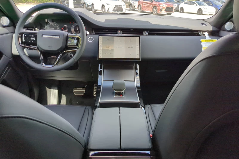 Không gian nội thất của Range Rover Evoque 2026 tiếp tục theo phong cách tối giản nhưng sang trọng, với màn hình cảm ứng cong 11,4 inch đặt ở trung tâm bảng táp-lô, sử dụng hệ điều hành Pivi Pro. Phần lớn các chức năng điều khiển của xe được tích hợp trong giao diện này, giúp giảm bớt các nút bấm vật lý. Hai thanh điều khiển đặt hai bên màn hình cho phép người dùng truy cập nhanh các tính năng thường sử dụng như điều hòa, sưởi ghế, camera hay âm lượng. Theo nhà sản xuất, phần lớn thao tác có thể thực hiện chỉ với hai lần chạm từ màn hình chính.