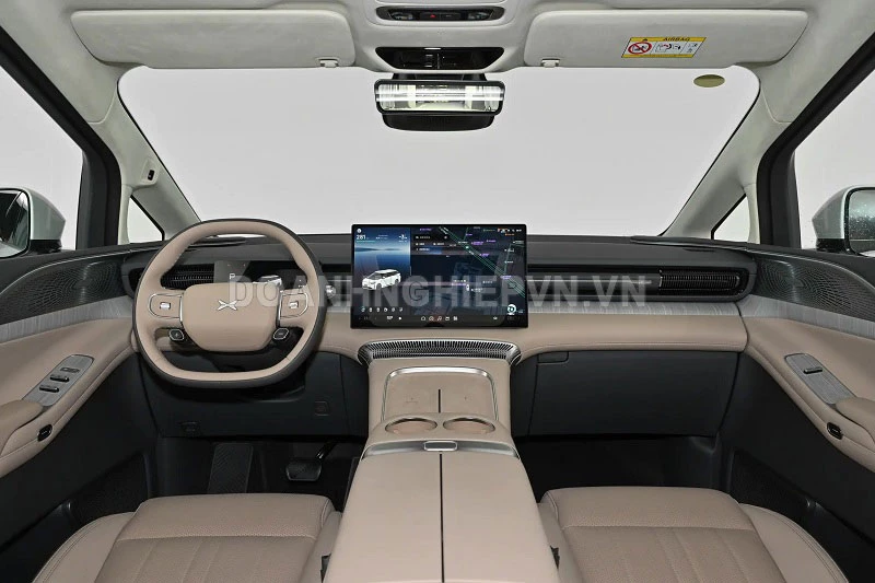 Khoang nội thất của Xpeng X9 2026 tập trung mạnh vào công nghệ và trải nghiệm hành khách. Xe sử dụng bảng đồng hồ LCD 10,25 inch, màn hình trung tâm nổi 17,3 inch và vô lăng hai chấu hiện đại, trong khi cần số được đặt trên cột lái nhằm tối ưu không gian trung tâm. Các tiện ích đáng chú ý gồm hai đế sạc điện thoại không dây, hai giá đỡ cốc và cấu hình ghế tiêu chuẩn 7 chỗ ngồi theo bố trí 2+2+3.