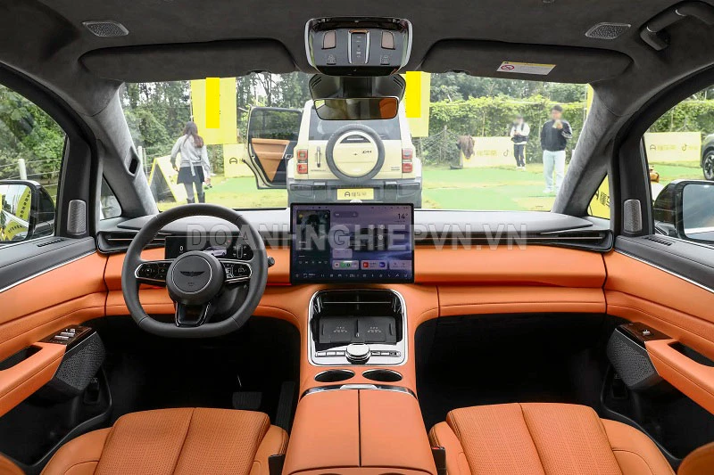 Khoang nội thất của Galaxy V900 được hoàn thiện theo hướng cao cấp, với hai tùy chọn màu be morning mist rice hoặc cam sunset orange. Khu vực lái trang bị màn hình trung tâm 15,4 inch, màn hình thông tin 10,25 inch và AR-HUD 19,8 inch, vận hành trên nền tảng Flyme Auto 2 với chip Snapdragon 8295P. Xe còn có gương chiếu hậu HD 9,2 inch truyền phát video, nâng cao tầm quan sát và an toàn.