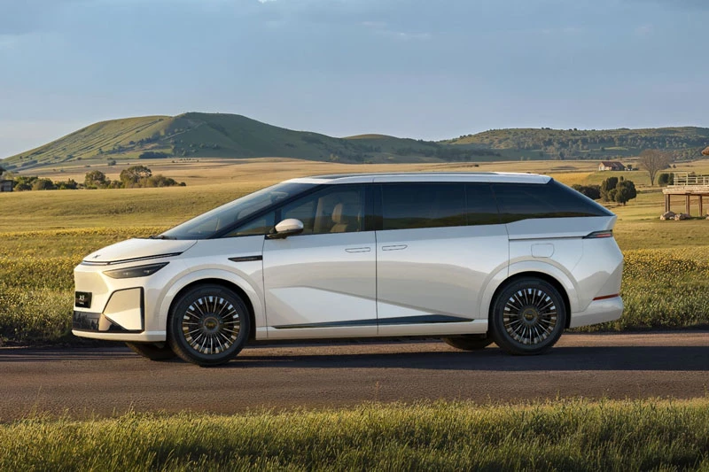 Về thiết kế, Xpeng X9 Extended Range gây ấn tượng với cảm hứng tạo hình “tàu chiến giữa các vì sao”, đặc biệt ở phần đầu xe được tái thiết kế mạnh mẽ. Khu vực hốc gió trước được mở rộng thêm 30% so với bản chạy điện thuần túy, tối ưu làm mát và hiệu quả khí động học. Lưới tản nhiệt chủ động được tích hợp tinh tế, đóng/mở tùy theo nhiệt độ pin và nhu cầu vận hành.