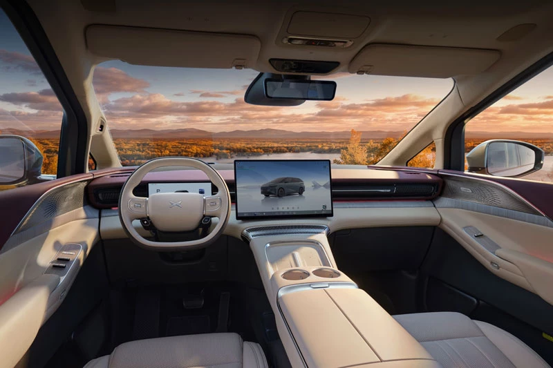 Xe có ba lựa chọn màu nội thất gồm xám azure, nâu moonlight và nâu cloud rose. Xpeng X9 mới còn được trang bị HUD toàn cảnh 21 inch hiển thị sắc nét, hỗ trợ dẫn đường theo làn tích hợp hiển thị môi trường SR, đưa trải nghiệm công nghệ trong cabin lên tầm cao mới.
