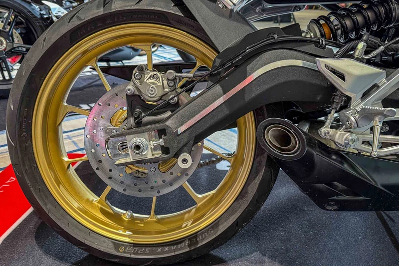 Sức mạnh này được truyền tới bánh sau thông qua hộp số 6 cấp côn tay và hệ truyền động xích, mang lại cảm giác vận hành thể thao, phù hợp với những người yêu thích vòng tua cao và âm thanh đặc trưng của động cơ 4 xi lanh.