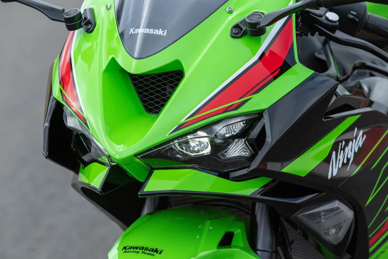So với thế hệ tiền nhiệm, Kawasaki ZX-6R 2025 mang diện mạo mới góc cạnh, hiện đại và đậm chất khí động học hơn. Lấy cảm hứng từ siêu mô tô ZX-10R, xe sở hữu cụm đèn pha LED thấu kính được thiết kế mảnh và dữ dằn, mang đến diện mạo sắc bén và mạnh mẽ.