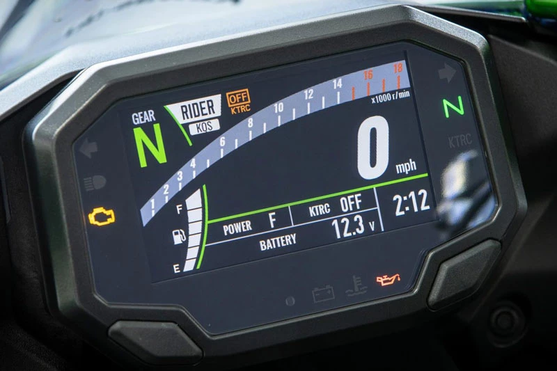 Bảng đồng hồ của ZX-6R 2025 được thay mới bằng màn hình TFT 4,3 inch, hỗ trợ kết nối Bluetooth với điện thoại thông minh, cho phép theo dõi các thông tin như cuộc gọi đến, lượng nhiên liệu, quãng đường, tốc độ trung bình hay lịch bảo dưỡng. Ngoài ra, xe còn tích hợp các công nghệ hiện đại như kiểm soát lực kéo KTRC, sang số nhanh hai chiều (Quick Shifter) và nhiều chế độ lái giúp tối ưu hiệu suất trong từng điều kiện vận hành.
