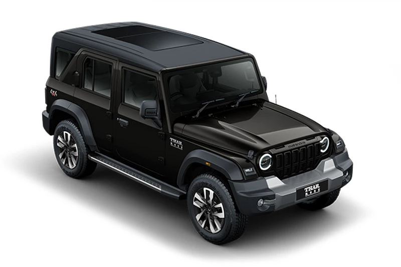 Thar Roxx vẫn giữ nguyên DNA “chiến binh off-road” của dòng Thar truyền thống với dáng hình hộp khỏe khoắn, khung gầm cao và những đường nét đậm chất cơ bắp. Tuy nhiên, phiên bản 5 cửa mới có chiều dài cơ sở được kéo dài lên 2.450 mm, giúp nội thất rộng rãi hơn đáng kể cho cả hành khách và khoang hành lý. Xe có kích thước tổng thể dài 3.985 mm, rộng 1.820 mm, cao 1.844 mm, mang đến cảm giác vững chãi và cân đối.