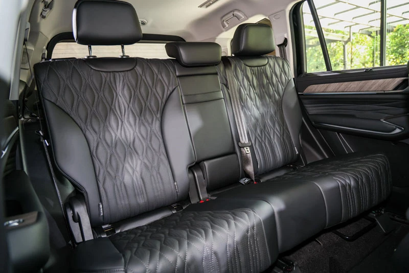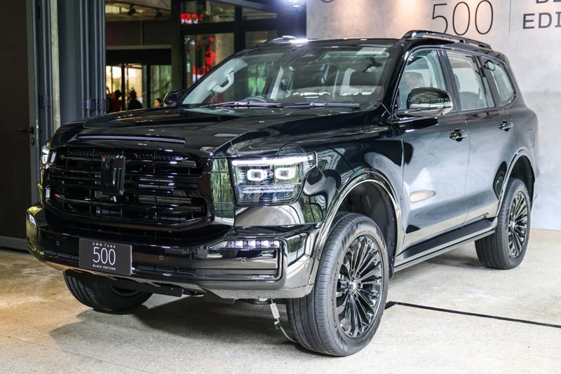 Lưới tản nhiệt lớn phía trước, viền cản hình chữ C, thanh giá nóc, tay nắm cửa, ốp viền đèn hậu, tấm bảo vệ gầm, vỏ bánh dự phòng và bậc lên xuống chỉnh điện đều được phủ lớp sơn đen đồng nhất. Cụm đèn pha LED được xử lý hiệu ứng khói tăng vẻ bí ẩn, kết hợp với bộ mâm hợp kim đa chấu 20 inch màu đen, hoàn thiện diện mạo sang trọng và thể thao cho chiếc SUV cỡ lớn này.