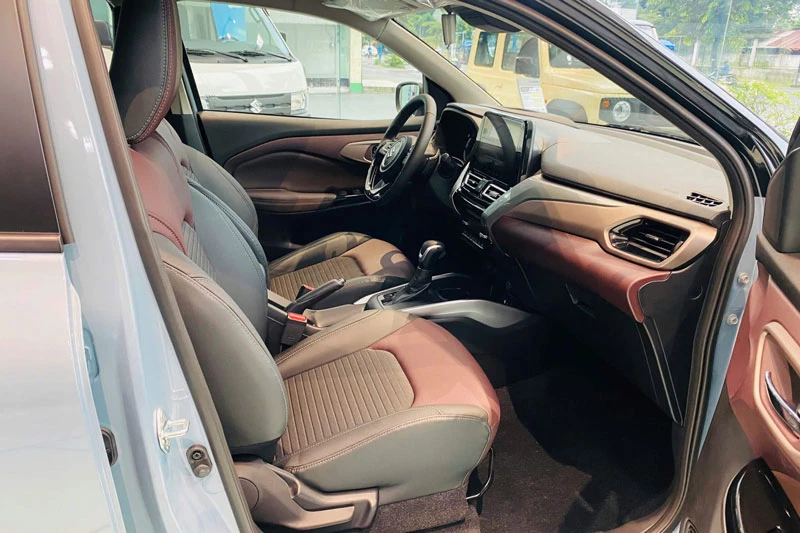 Khoang nội thất của Suzuki Fronx được thiết kế hướng đến sự tiện dụng và công nghệ, với vô-lăng ba chấu tích hợp phím điều khiển đa năng, màn hình giải trí cảm ứng 9 inch hỗ trợ Apple CarPlay và Android Auto, cùng hệ thống âm thanh 6 loa.