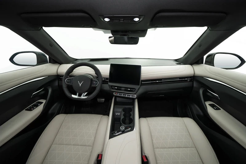 Kích thước của VF 7 là 4.545x1.890x1.635,75 mm, chiều dài cơ sở 2.840 mm, và khoảng sáng gầm 190 mm. Nội thất xe rộng rãi với dàn ghế bọc da cao cấp. Cabin tập trung vào trải nghiệm người lái với màn hình giải trí cảm ứng 12,9 inch, hệ thống hiển thị thông tin trên kính lái HUD, vô-lăng D-cut 2 tông màu và dàn phím bấm chuyển số tinh tế như đàn piano. Phiên bản Plus có cửa sổ trời toàn cảnh Panorama.