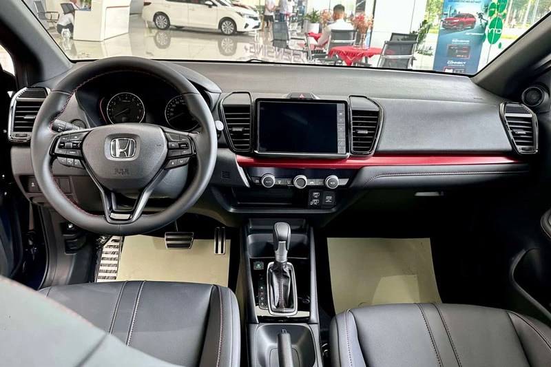 Nội thất ghế bọc da đen cùng đường viền chỉ đỏ (RS) tương phản như một điểm chấm phá hấp dẫn thị giác, góp phần tôn lên sự mạnh mẽ và phóng khoáng cho chủ nhân. Nhằm mang lại sự tiện nghi tối đa cho khách hàng, Honda City mới tích hợp thêm nhiều tính năng tiện nghi hàng đầu phân khúc như hệ thống âm thanh 8 loa cho âm thanh trung thực (RS, L). lẫy chuyển số thể thao (RS, L), chức năng khởi động xe từ xa (RS, L).
