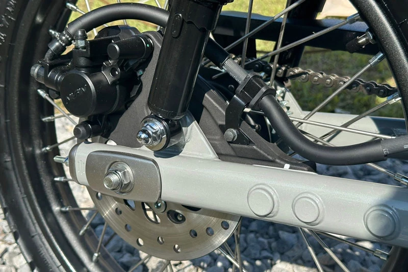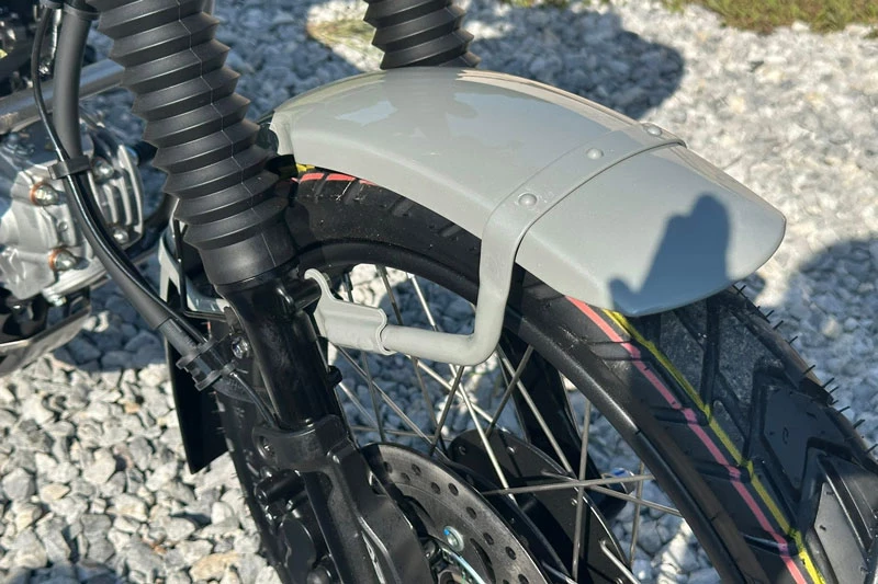 Bộ lốp gai chuyên dụng tăng khả năng bám đường, cho phép xe vận hành ổn định trên mọi địa hình - từ phố thị đến đồi núi, sỏi đá hay đường mòn. Đặc biệt, hệ thống chống bó cứng phanh ABS trên bánh trước giúp duy trì sự cân bằng và kiểm soát tối ưu khi phanh gấp hoặc di chuyển trên mặt đường trơn trượt, nâng cao độ an toàn cho người lái.