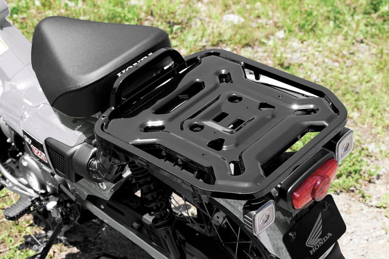 Không chỉ mạnh mẽ, CT125 2026 còn thể hiện tính thực dụng cao với giá chở hàng lớn phía sau (rộng 409 mm, dài 477 mm) cùng 4 móc treo tiện lợi, giúp người lái dễ dàng mang theo hành lý, đồ nghề hoặc vật dụng dã ngoại. Bên cạnh đó, khung bảo vệ gầm bao quanh động cơ giúp hạn chế va đập từ đá, sỏi hay chướng ngại vật, mang lại sự an tâm khi băng qua các cung đường mạo hiểm.