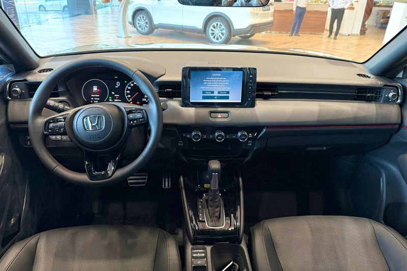 Khoang nội thất Honda HR-V e:HEV RS được trang bị màn hình giải trí trung tâm 8 inch hỗ trợ kết nối điện thoại thông minh, ghế bọc da, điều hòa tự động cùng nhiều tiện nghi đáp ứng tốt nhu cầu sử dụng hàng ngày. Tùy phiên bản, xe có thêm màn hình đồng hồ kỹ thuật số, camera toàn cảnh và các tính năng hỗ trợ lái nâng cao.
