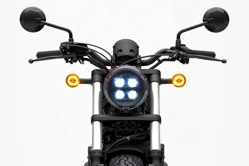 Về trang bị, Honda Rebel 500 2026 được trang bị hệ thống đèn LED toàn bộ, trong khi bảng đồng hồ là màn hình LCD tròn đường kính 100 mm với nền âm bản, hiển thị đầy đủ các thông tin như tốc độ, vị trí số và mức tiêu hao nhiên liệu. Thiết kế bảng đồng hồ đơn giản nhưng vẫn đảm bảo tính hiện đại và dễ quan sát khi lái xe.