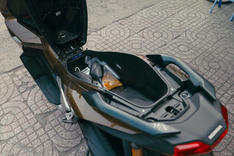 Về khả năng vận hành, ADV 160 2026 được trang bị phuộc sau bình dầu phụ, lốp trước kích thước 110/80-14 và lốp sau 130/70-13, giúp xe vận hành linh hoạt, êm ái nhưng vẫn đảm bảo độ bám đường tốt. Khoang chứa đồ dưới yên dung tích 30 lít tiếp tục là lợi thế lớn, đủ chỗ cho một mũ bảo hiểm fullface cùng nhiều vật dụng cá nhân, đáp ứng tốt nhu cầu sử dụng hàng ngày lẫn đi xa.