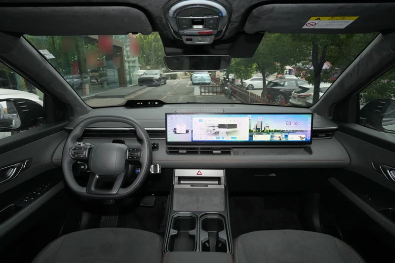 Đèn LED chiếu sáng ban ngày kéo dài liền mạch, trong khi cản trước dạng ba khoang với lưới tản nhiệt hút gió chủ động ở trung tâm và khe gió hai bên tăng tính khí động học. Xe có bảy tùy chọn màu ngoại thất, gồm tím hoàng hôn, trắng ngọc trai, đen ngọc trai, trắng mờ, bạc cyber, xanh ngọc lam và xám camouflage phù hợp với nhiều phong cách khác nhau.