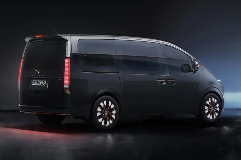 Phần đầu xe được tối giản các chi tiết, mang đến vẻ ngoài gọn gàng, trong khi phiên bản Staria Lounge cao cấp sở hữu lưới tản nhiệt dạng khối mạ crôm cùng cản trước thiết kế vững chắc, nhấn mạnh sự sang trọng và khác biệt so với các mẫu MPV truyền thống.