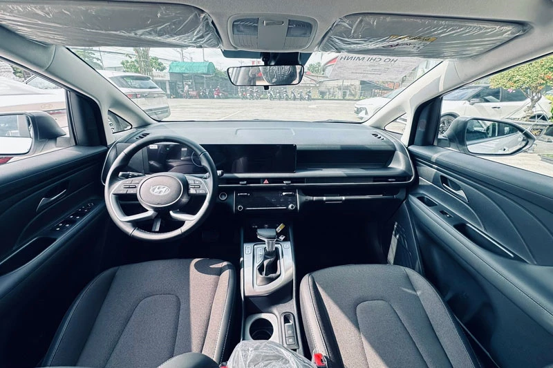 Không gian nội thất của Hyundai Stargazer 2026 cũng được nâng cấp đáng kể, đặc biệt trên hai phiên bản cao hơn khi được trang bị cụm màn hình kép kích thước lớn, tạo cảm giác hiện đại và liền mạch. Xe sử dụng vô lăng bọc da, hệ thống đèn nội thất, ghế ngồi kết hợp da và nỉ, cùng bàn gấp cho hàng ghế thứ hai, tăng tính tiện dụng cho gia đình. Phiên bản Cao cấp còn được bổ sung phanh tay điện tử, nâng cao trải nghiệm sử dụng so với các bản tiêu chuẩn.