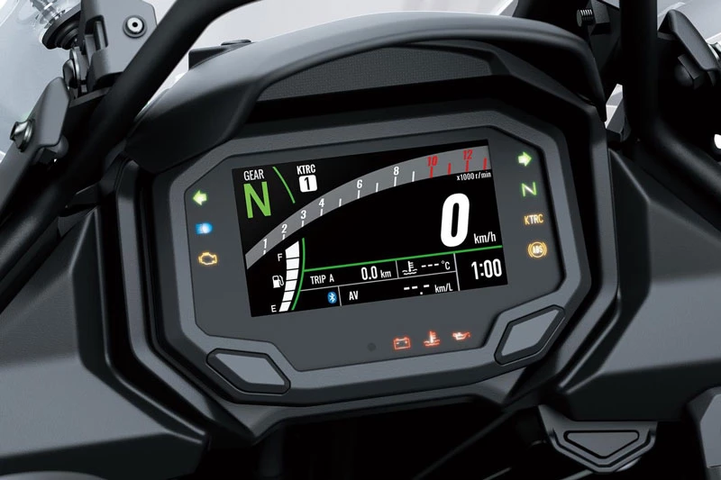 Ở mảng công nghệ và tiện ích, Kawasaki Versys 650 2026 sở hữu bảng đồng hồ kỹ thuật số TFT kích thước 4,3 inch, hỗ trợ kết nối điện thoại thông minh, giúp người lái dễ dàng theo dõi thông tin và quản lý các chức năng trong quá trình vận hành.